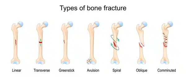 As discussed above, a fracture is a break, crack, or splintering of a bone caused by trauma, overuse, or underlying medical conditions. Fractures can range from minor hairline cracks to severe, life-threatening compound (open) fractures where the bone pierces the skin. They can be complete (bone broken into two or more pieces) or partial (a crack that doesn’t go all the way through the bone). Fractures can occur in any bone in your body.