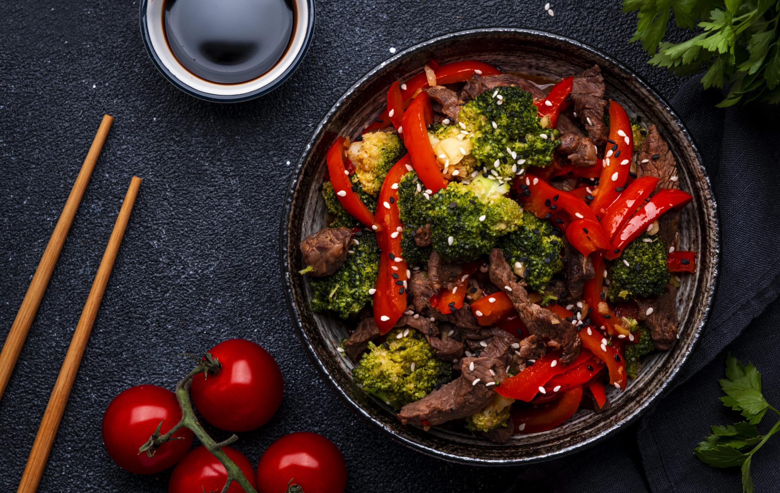 Beef stir-fry with capsicum & broccoli | Haem iron (meat) | Add vitamin-C veg; keep tea/coffee for later |