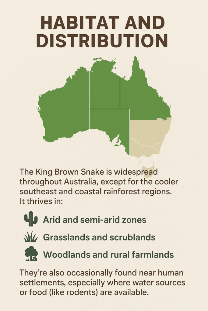 • The King Brown Snake (Mulga Snake) is a large, venomous reptile found throughout Australia