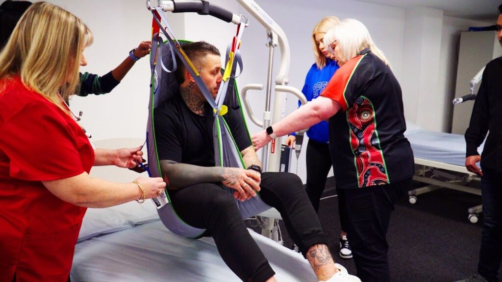 Our modern facility features specialised manual handling equipment including patient hoists, hospital beds, slide sheets, wheelchairs, and wheelie walkers – ensuring hands-on, practical training that mirrors real workplace scenarios.